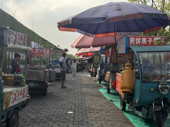 十月中旬,景德镇还是夏天,下午刚过1点,摊贩们就顶着太阳骑三轮车往这赶,有人放下饭碗就出发,骑了十几公里,只为了抢一个离鸡排哥近的位置。