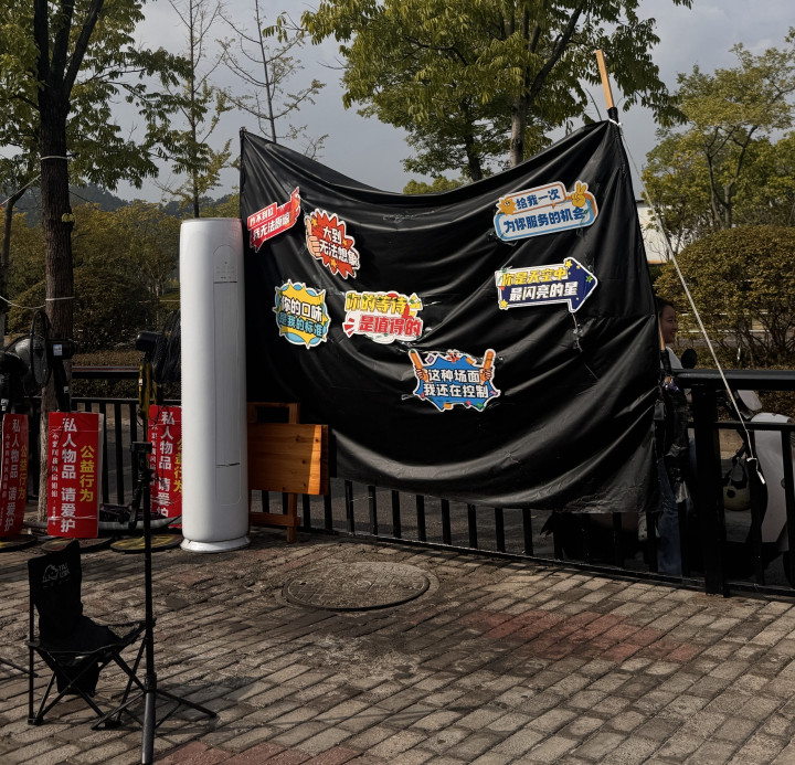 后来,酒店彻底关门,他买了部新手机,下定决心做全职主播。2024年6月,郭有才在各地巡演,他开车跟着,从山东到湖南,再到浙江,跟了五六站。菏泽三十七摄氏度的高温,为了抢直播前排的C位,他凌晨四点就守在广场,困了就往地上躺,还得挨着蚊子咬,直到第二天上午十点开播。